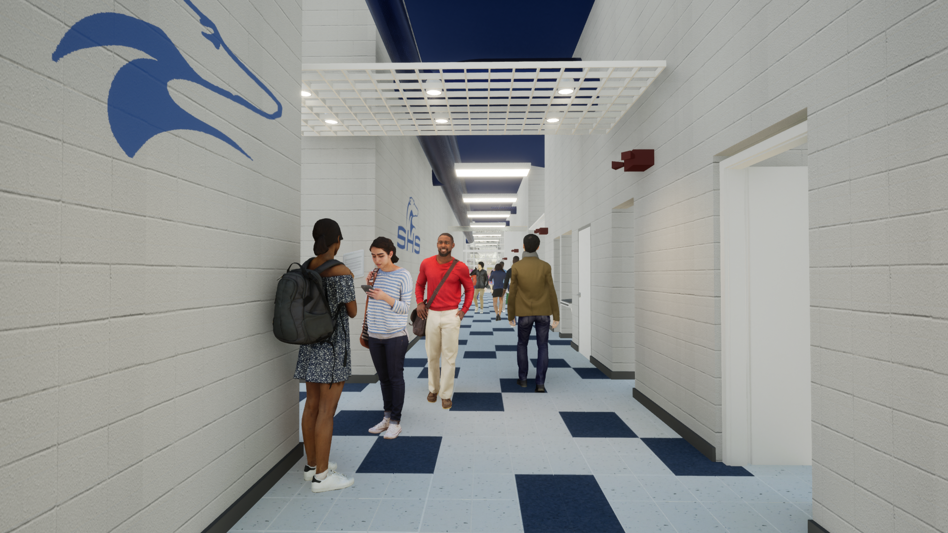 The Statesville High School's new Career and Technical Education and Athletic building is an ambitious project that brings together state-of-the-art facilities for athletics and vocational training under one roof. The two-story structure is designed to integrate the different programmatic elements, with the lower level dedicated to the school's athletic program and the upper-level housing the woodworking, agricultural, and mechanic shops. The building's design is marked by its connection to the outdoors, with large coiling doors providing access to outdoor work yards for each shop. The building also includes three classrooms adjacent to each shop area to support instruction. The main level corridor is a particular highlight, with its open ceiling system and large storefront systems providing an engaging and interactive space.