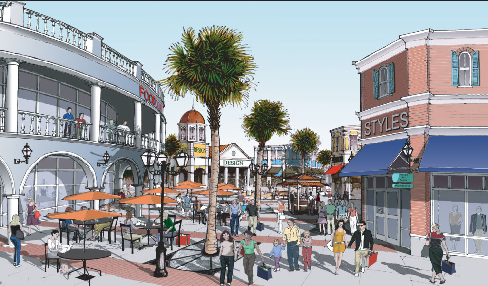 The Tanger Outlets of North Charleston were designed to create the perception of shopping in old downtown Charleston. The architecture was inspired by the colonial houses and businesses of Charleston. The center has “old south” style fountains in the two main central courtyards. East and west walkways are covered with sky-lit roofs to allow natural light into the galleries below. The outlets provide an elegant shopping experience.